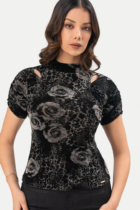- Estampado floral con efecto animal print que aporta carácter