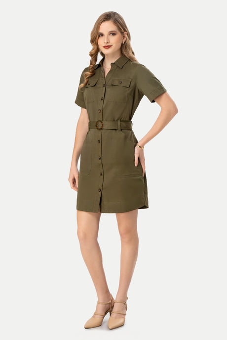 - Diseño camisero con botonaduras frontal que completa, cuello clasico, y bolsillos de parche