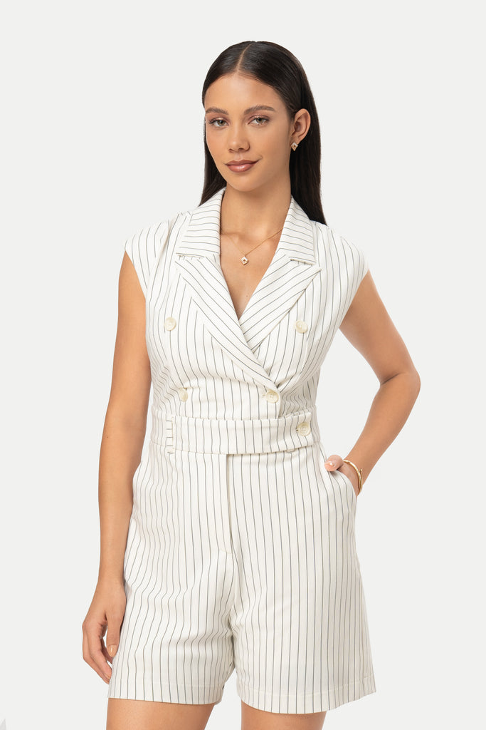 - Aplicación de pinstripe (rayas verticales) que estilizan la silueta